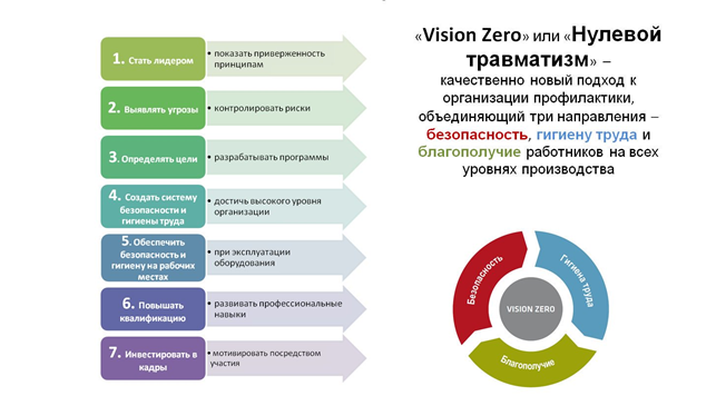 Vision Zero – это подход, преобразующий содержание профилактики, в котором объединяются три аспекта трудовой деятельности всех уровней – безопасности, здоровья и благополучия.