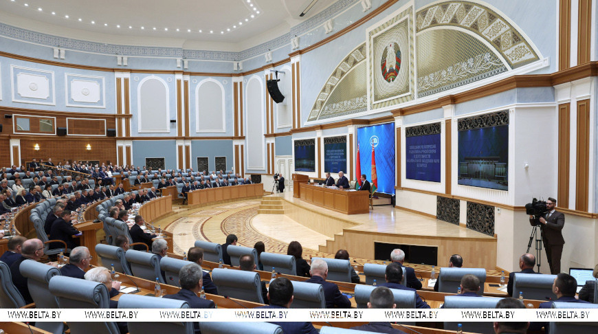 Глава государства заметил, что экономика Беларуси работает в условиях санкций, предприятия постоянно сталкиваются с сильными ограничениями на экспорт продукции, импорт сырья, покупку оборудования, проведение расчетов за поставленные товары.